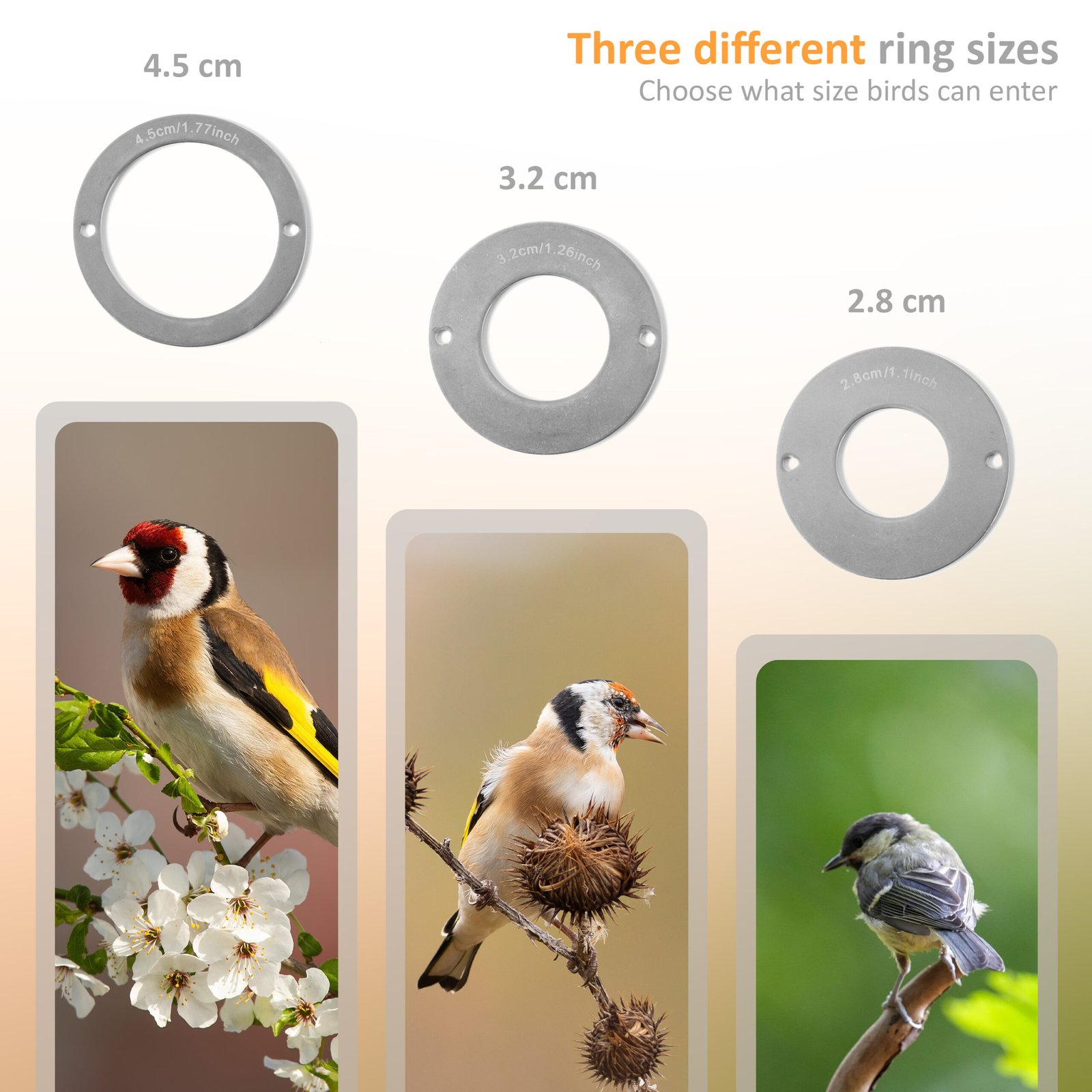 - ✅ Attract your preferred bird species with 3 different entrance openings